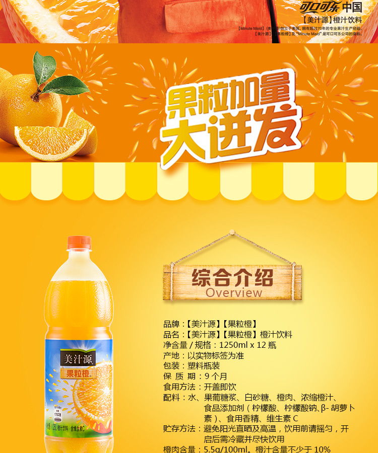 美汁源 Minute Maid 果粒橙 果汁饮料 1.25L*12瓶 整箱装 可口可乐公司出品 新老包装随机发货