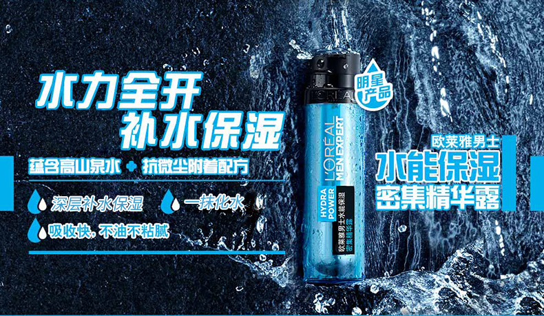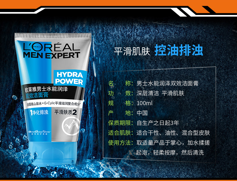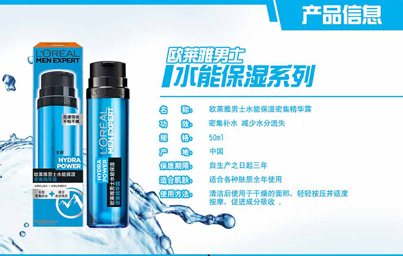 欧莱雅(L'OREAL) 男士水能护肤品洗面奶套装面霜补水保湿滋润肤乳液擦脸油护脸霜 保湿强润霜+酷爽水凝露120ml