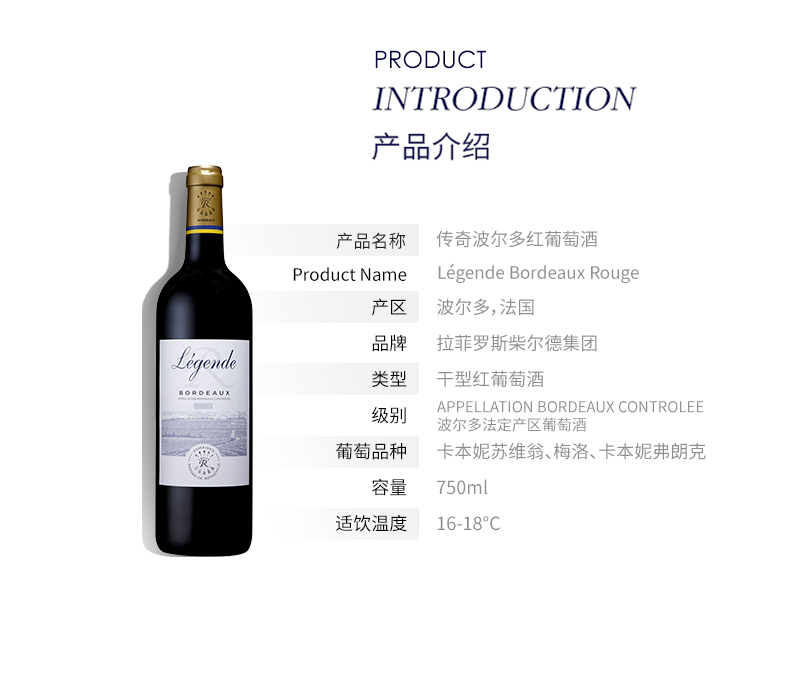 法国进口红酒 拉菲(LAFITE)传奇波尔多干红葡萄酒 整箱装 750ml*6瓶(ASC)
