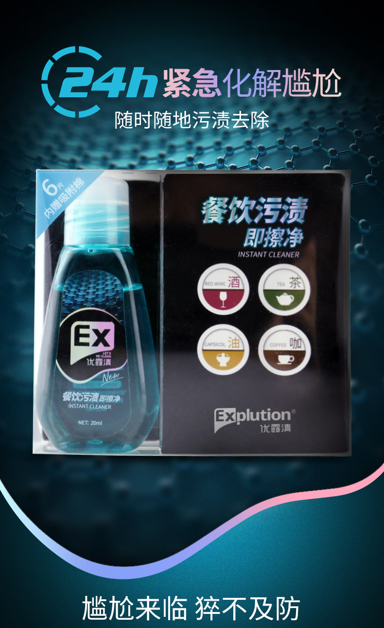 优露清(Explution) 便携式去污笔去渍笔 衣服免水洗去油渍干洗剂 应急去污魔法笔随身携带 一盒装