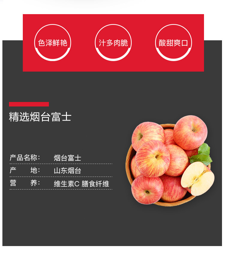 花果山 烟台红富士苹果 12个 净重2.1kg以上 单果160-190g 一二级混装 自营水果